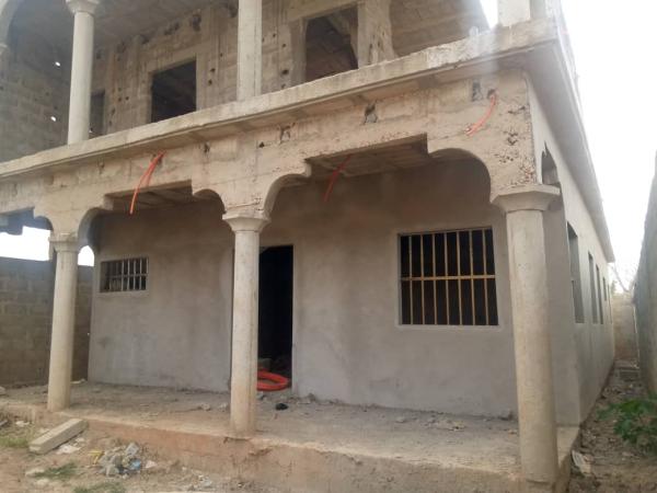 A louer appartement de 05 chambres salon WCD interne à 150 m goudron au rez chaussée 02 chambres salon WCD cuisine interne plus garage eau TDE disponible cash power au premier étage 03 chambres salon WCD cuisine interne petit halle balcon à 300000 FCFA avance et caution 6 mois