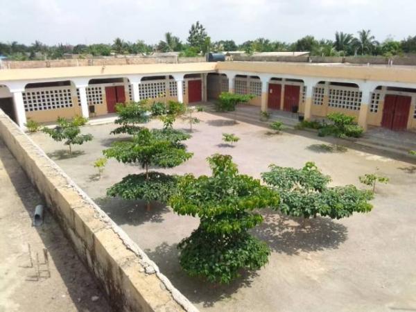 A vendre 4 lots composé d'une grande école à 2 km du goudron composé de 16 classes de la maternelle au CEG 4 bureaux 3 WC 3 douches infirmièrie salle d'informatique cantine carreaux dans toutes les classes document certificat administratif autorisation d'ouverture fondation prévue pour 5 niveaux l'école est à sa 5 ème année